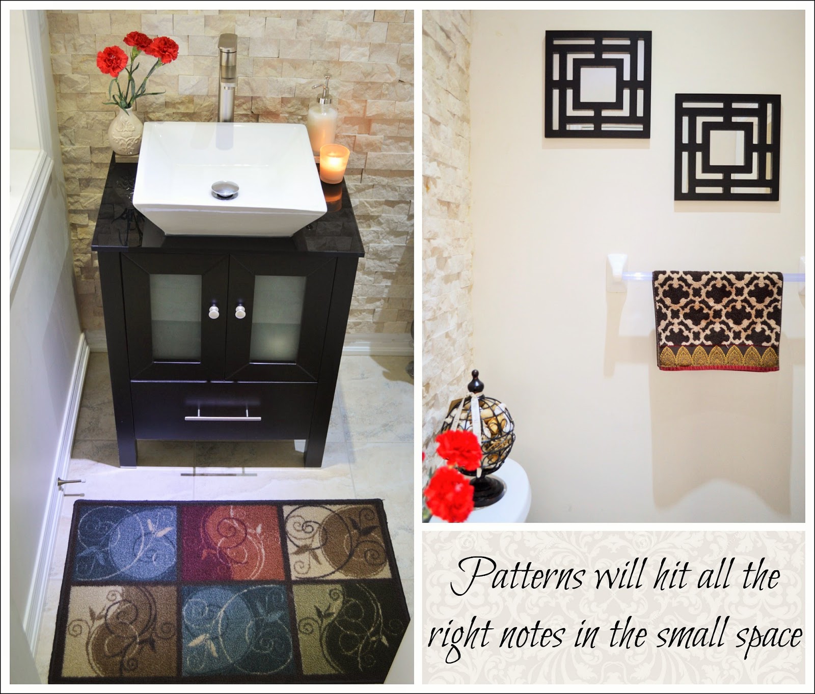 Ever since nosotros had sealed the bargain for our novel home, nosotros had a fixed blueprint finish for our petite pulverization room inwards the home. Leaving it tedious because of the picayune infinite inwards the room was definitely non me. Though, dissimilar my other traditional rooms, our pulverization room has been given a shot of contemporary fashion amongst added texture, color too pattern.